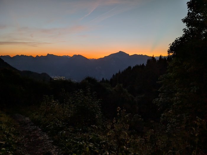 I’m lucky, letting a participant in the 700k race set the pace on the climb out of Barme. He seems indestructible. The trail composition changes from rocks to mud. Then some more mud. Sodding and sliding. The sun paints the rock faces in red. The night settles in again. The second night, with little sleep to go by.