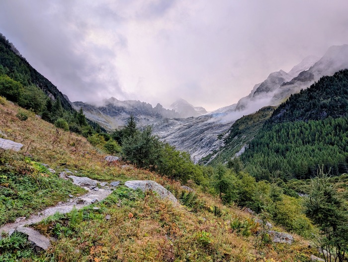 So far, I made one mistake downhill, one uphill. Now a reasonable flat part awaits, and I keep it chill. After climbing Mont Brulé, I pick a better pace down to Orsières, and then Prassurny.