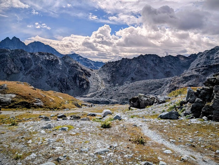 The group, sporadically formed, is moving at a very steady pace. Perfect to tame the wild Fenêtre d’Arpette. One of the runners asks me whether I wanted to buddy up for the traverse, as he was concerned about the scrambling sections; his first time on the course. The scrambling parts are within my comfort zone, and I’m glad that I was able to help a runner just like a couple of runners helped me with their company when wrestling my way up to the very same pass with stomach issues three years ago.