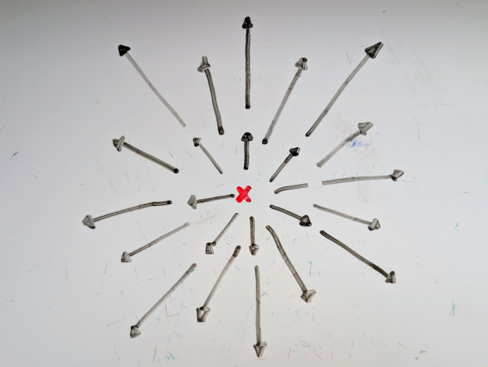First, when approaching a runway for landing, I found it pretty difficult to keep the airplane aligned with the centerline, particularly from the cockpit view. Without any guidance from a localizer, how to know whether the airplane is too far left or too far on the right? How to know whether it is too high or too low? The following conceptual picture seemed to have help me the most: when flying towards the aiming point (x), that point should not be moving on the screen—that is how I know that I am on the right path. Every other point will move left, right, up or down the screen.