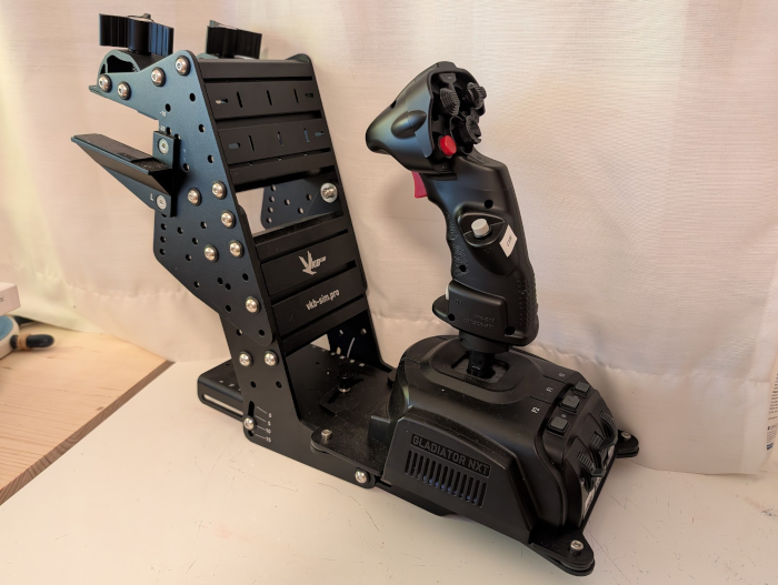As a software engineer, I tried to solve that problem […] by buying some hardware. A joystick has much higher resolution, and alas, it helped with keeping the plane on the extended centerline. Somewhat.
